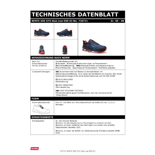 Eigenschaften "ELTEN Sicherheitshalbschuh BENTE XXE GTX blue Low ESD S3 720721-46"