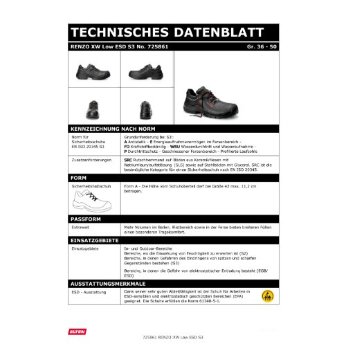 Eigenschaften "ELTEN Sicherheitshalbschuh RENZO XW Low ESD S3 725861-43"
