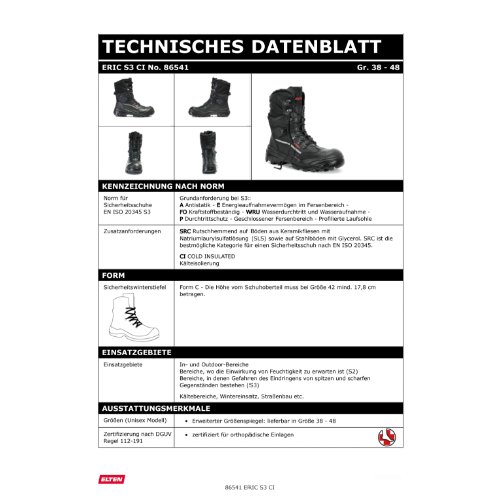Eigenschaften "ELTEN Sicherheitswinterstiefel (Form C) ERIC S3S CI 86541-41"