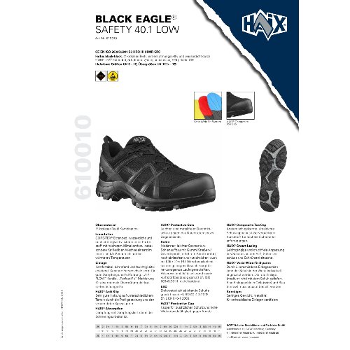 Eigenschaften "HAIX Si.-Schuh Black Eagle Safety 40.1Low ESD,schwarz ,S3 HRO HI CI WR SRC,Gr.47"