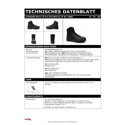 Eigenschaften "LOWA Sicherheitsstiefel LEANDRO Work LX Pro GTX Mid S3S CI 5880-43"